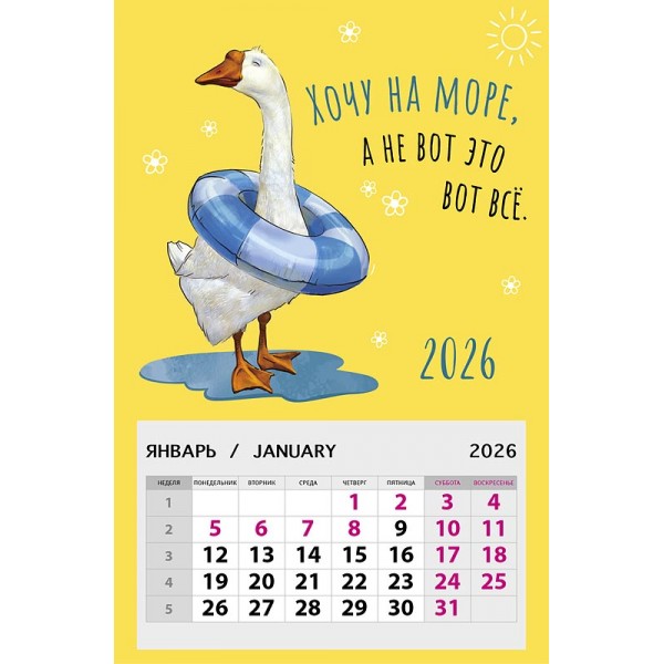 Календарь на магните 95х145 Хочу на море, а не вот это все. 2026
