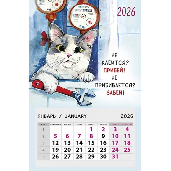 Календарь на магните 95х145 Не клеится? Прибей! Не прибивается? Забей! 2026