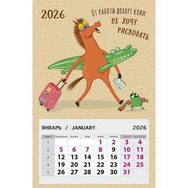 Календарь на магните 95х145 От работы дохнут кони. Не хочу рисковать. 2026