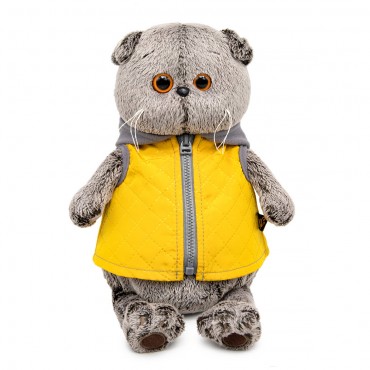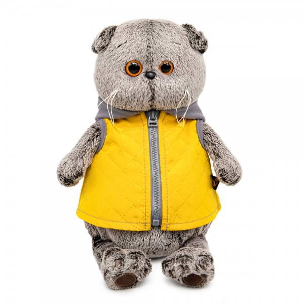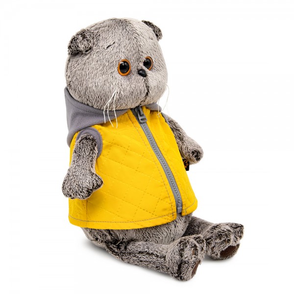 Кот Басик в желтой жилетке с серым капюшоном (22 см)