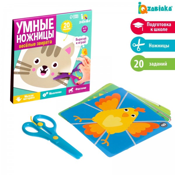 Развивающий набор «Умные ножницы» рекомендован детям старше 3 лет. Он способствует развитию у малыша мелкой моторики, мышления, памяти и внимания.